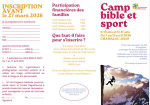 Camp bible et sport 7-11 avril 2026